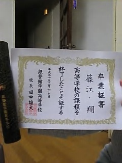 *花楓くんの分と自分の分をしっかり受け取り。社長から「卒業おめでとうございます」の言葉と共に立派な証書を受け取る