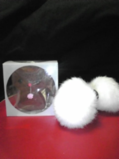 ちょっと見にくいけど、左が猫のクッキーで…右が白いボンボン付きの髪ゴムです。
