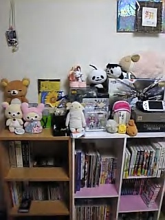 本棚に並んでるのはアニメDVDとマンガと同人誌←